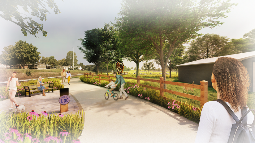 The design will feature a variety of amenities, including the use of limestone and iron materials detailing, paying homage to Elizabethtown's "Bourbon's Backyard" designation. Phase I of the project will focus on the connection between the hotel area off of I-65 and downtown. Phases II and III will look to expand the area and create a "Discovery Zone." The specific zone will feature green space and trails for hikers, runners, and bikers. This trail project was originally identified in the E-town Trails Master Plan also led by Taylor Siefker Williams Design Group.